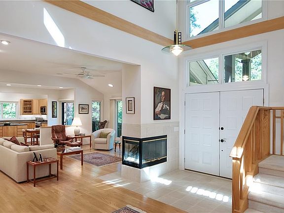 - Ceiling Fan(s), Wet Bar, Jetted Tub, Walk-In Closet(s), Gas Logs, Fireplace, Cathedral Ceiling(s), Washer Connection, Bookcases, Wired for Data, Wired for Sound, Walk-In Shower, Dryer Connection-Electric, Blinds, Connection - Washer, Electric Garage Door, Laundry Room Sink, Some 9' Ceilings, Attic Stairs-Disappearing, Connection - Dishwasher, Connection - Ice Maker, Smoke Detector, Countertops-Solid Surface, Alarm System-Owned, Fireplace - Double Sided, Glass Door, Countertops-Other, Fireplace-Gas Connection