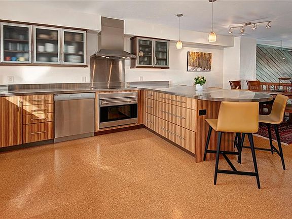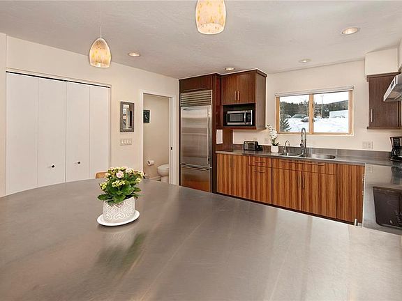 A very rare opportunity with this exquisite contemporary remodel in Breckenridge's most iconic slope side/in-town location, never to be replicated again. A kitchen is the heart of any mountain home & this is no exception, with its Wolf range, Sub Zero refrigerator, custom modern cabinetry, one of kind stainless steel counter tops & beautiful cork floors. The great room has soaring ceilings, a cozy fireplace to gather around while the 3 en-suite bedrooms offer wonderful privacy for your guests.