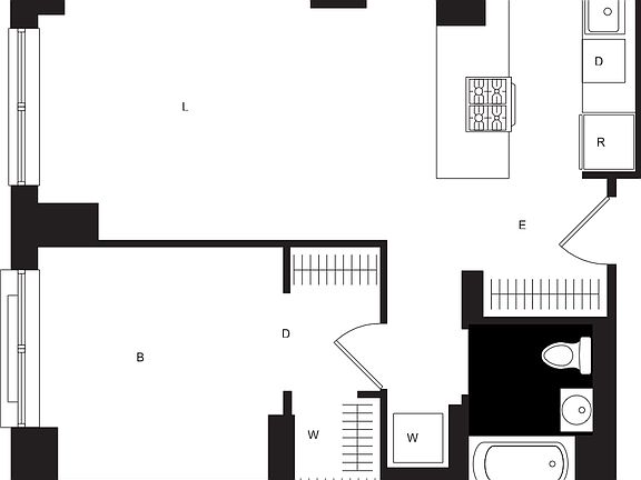 Penthouse Corner 1 Bedroom, 1 Bath with a open kitchen, spacious closets, and northern & eastern exposure with views of the Empire State Building.