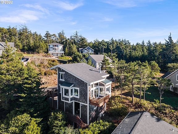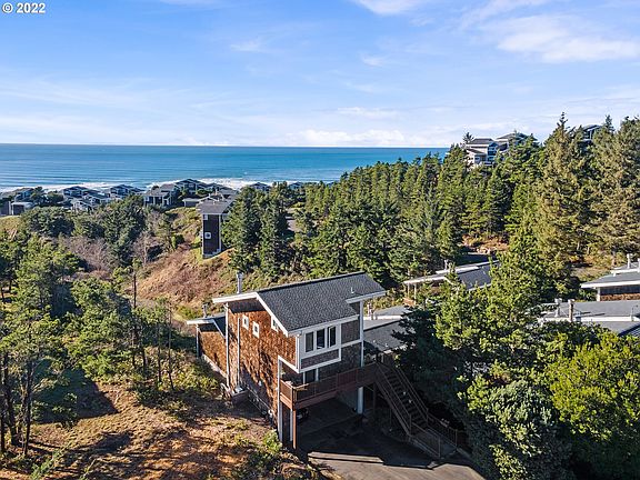 Rare, stand-alone ocean view cottage in The Capes ocean front gated community! Well-appointed contemporary interior w/open floor plan, vaulted ceilings on both levels, cozy sleeping nook & wood burning fireplace. Modern kitchen w/white cabinets, ocean view island, brkfst bar & tile counters. Walk to the beach every morning on the private trail & enjoy evenings watching sunsets from your ocean view deck. Designer tile in kitchen & bath. Attached shared carport. 30 day/year vacation rental max.