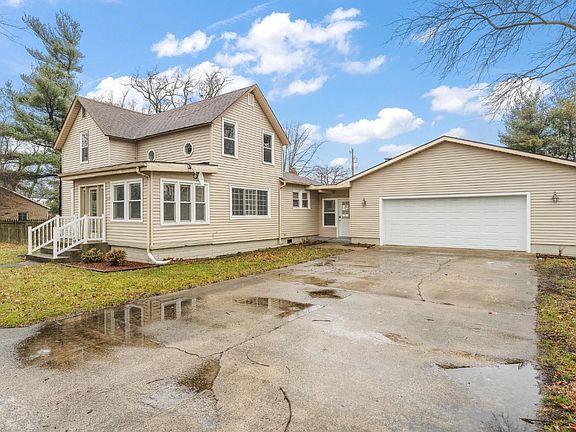 Sweet Hamlet haven! This charming 3 bedroom, 2.5 bath classic cape cod has been beautifully remodeled in recent years w/ plenty of modern upgrades. As you enter, you'll be greeted by an inviting living room w/ hardwood floors & plenty of natural light. Dedicated dining space flows into the kitchen, which has been fully updated w/ stainless steel appliances, quartz countertops, a tasteful backsplash, & stylish cabinetry. The main level bedroom boasts an en-suite bathroom w/ a tiled shower/tub & a sliding entry door. Upstairs, the 2 additional bedrooms share a 3/4 bath. The cozy rec room between the house & 24x28 garage features an exposed-beam ceiling, double patio doors leading out back, along w/ a fireplace & an L-shaped padded storage bench - excellent spot for get-togethers! A convenient half bath & large laundry room w/ storage rounds out the main level. Outside, you'll find a large fenced yard w/ a deck, above-ground pool, storage shed, & covered patio. New HVAC, too! WOW!