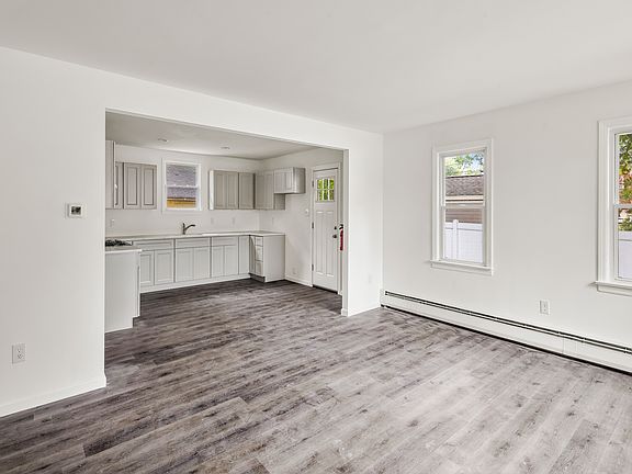 Newly renovated 1st floor unit includes large eat in kitchen, large living room, bonus room, and two good sized bedrooms with lots of closet space. Kitchen, bathroom, all flooring, and paint just redone. Includes laundry hookups with interior basement access for storage. Garage included! 12-36 months