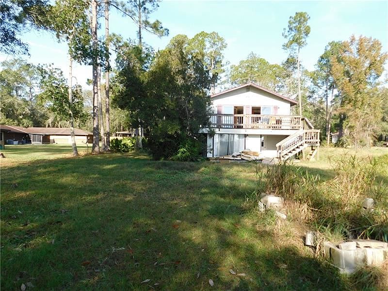 Home on Beautiful George Lake, home to some of the best fishing in the state!. This home is handyman special or seller, a licensed contractor will renovate and update. He and his crew built the 28 x 60 Garage in the front of home. First floor is a large fully equipped efficiency unit, Kitchen, and full bath. Upstairs has 3 bedrooms, kitchen, living room and deck overlooking the lake.