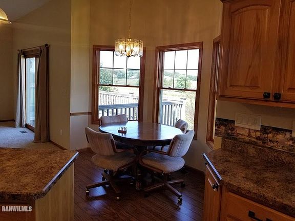 Entertainers Delight! From the time you drive up the driveway this home has your attention! Stunning home with breathtaking views, but very much the feeling of HOME. Walk thru the front door a living room with fireplace, vaulted ceiling, and patio doors to the deck that you can view sunrises and sunsets, the perfect way to start and end you day. As you enjoy the open living space you have a custom built kitchen with local custom cabinets throughout the kitchen along with 2 pantries for all your cooking needs. View the countryside while sitting at your table having your morning coffee. Pella windows throughout the home to give plenty of natural lighting. Large master bathroom with whirlpool tub, as well 2 sinks, a shower and a walk-in closet. Lower level has another kitchen, dining area, bathroom, and cozy wood burner strategically in place to set in front of but enjoy the view thru the walk out doors to the beautiful fenced in yard. Bonus to this house is has oversized 2 car garage but also a third garage and plenty of storage on lower level. This home is Stunning!! Located close to schools, parks, pools, grocery store, but in a peaceful area as well.