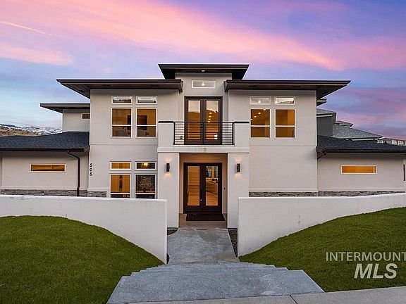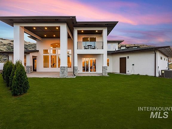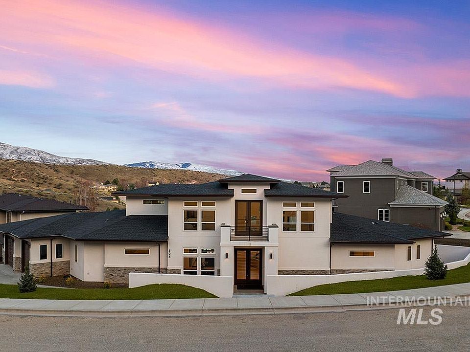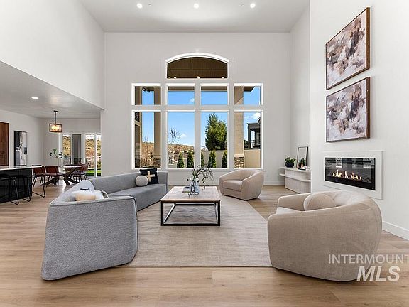 Stunning new Mediterranean Modern in Hackberry Ranch! Situated on a dead-end road integrated into the foothills, this brand-new custom home offers luxury living just minutes from Bogus Basin, the North End, foothill trails & downtown. The striking design showcases soaring double-height ceilings, an open-concept great room, & upscale finishes. A gas fireplace anchors the living area, while expansive windows flood the space with light. The magazine-worthy kitchen features sleek two-toned cabinetry, a statement tile backsplash, & is flanked by both formal and casual dining spaces. Privately set on its own wing, the master includes patio access, a fireplace, & a spa-like en suite with dual vanities, a soaking tub, & a dual-entry walk-in shower. The spacious closet features washer/dryer hookups. The beautifully landscaped grounds offer multiple covered patios areas for outdoor living. Refined living perfectly positioned to experience the very best of Boise! Priced below recent appraisal value - see docs for info.