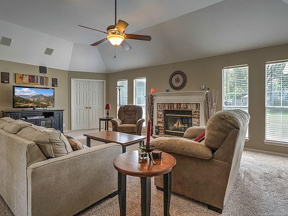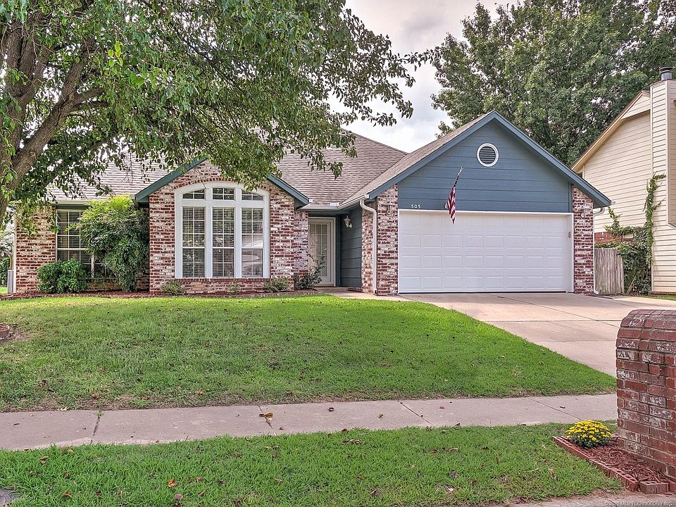 DON'T MISS THIS WELL MAINTAINED, SINGLE LEVEL 3 bed/2 bath home! Convienient to Creek Turnpike, food and shopping. MANY UPDATES include: Hot Water Heater, granite, backspash, dishwasher, microwave, bathroom vanities/mirrors, flooring, paint inside and out, guttering, insulated garage doors, attic fans and more. Vaulted ceiling in both bedrooms and Living. Nice yardspace in BY with NEWER SHED. BONUS: 3rd driveway with pad & RV connection.