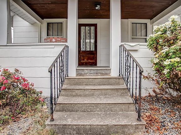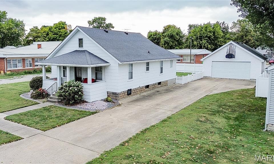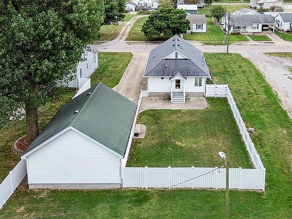 Timeless charm in the heart of town. This well maintained home offers character and comfort. From the inviting covered front porch you'll find an open living to dining area into the kitchen with breakfast bar, some frosted glass display and storage cabinets, a large pantry cabinet with pull out drawers, medium maple undertones makes for a warm and inviting space. All appliances are included. Around the corner is the primary bedroom suite with ample closet storage and a full bathroom. Down the hall at the front of the home is another bedroom (potential wood floors under carpet) and a full bathroom with linen closet. Both baths have elevated toilets 2025. From the living area is the wide attic stairway which could be a nice 3rd bedroom. From the kitchen kick the swing door open to the unfinished area to use as you choose. A true blend of vintage appeal and everyday uses. Outside enjoy the fenced back yard and patio area with oversized detached 2 car garage Built in 1987, with abundant loft storage or a creative hideaway. Just minutes from shopping, schools and restaurants. OPEN TO ALL LOAN TYPES!