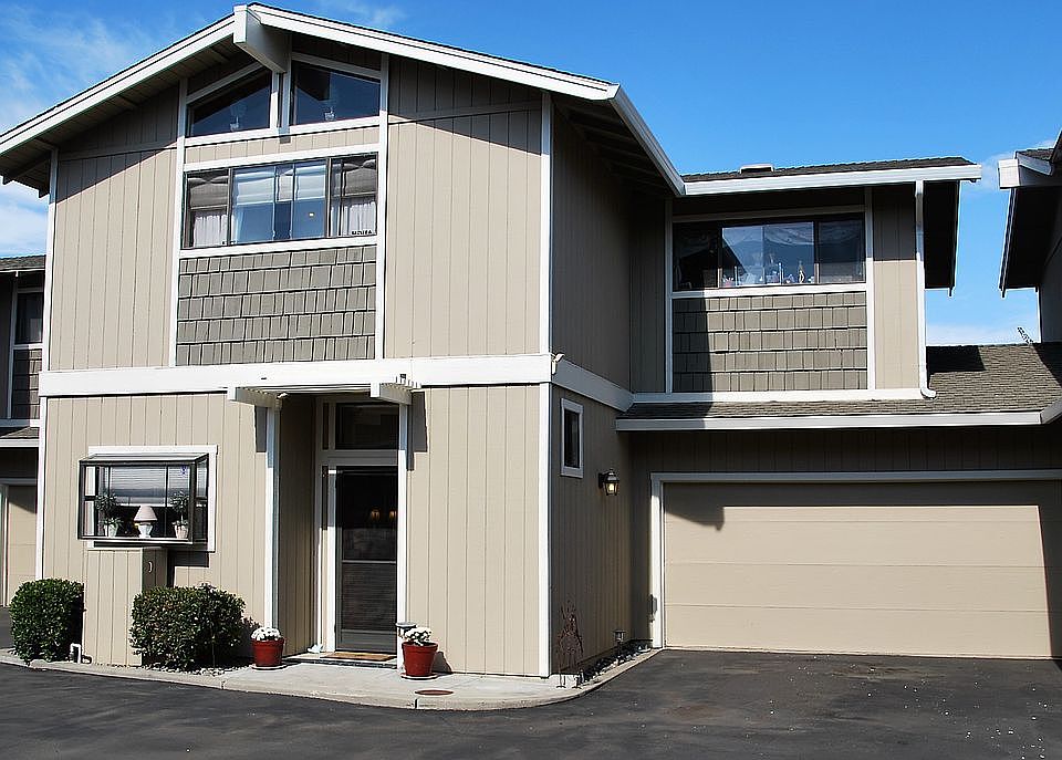 Hidden gem located in South Salinas. Freshly painted and modernized 2 story townhome with extended 2 car garage. Ground level opens to cozy living room with fireplace, crown molding and hardwood floors. Sunlit kitchen with garden window, granite counter tops and appliances included. Dining area within the living room leads to colorful and charming back yard patio. Upper level master suite feels lavish with vaulted beamed ceilings, mirrored closet doors, secondary Cedar closet and relaxing fireplace. Updated bathroom with tiled shower and separate tub. Guest bedroom with two closets and split bathroom creates a secondary master impression. Located in a quaint 10 Unit Planned Development, HOA maintains exterior and roof plus water, professional management & reserves.
