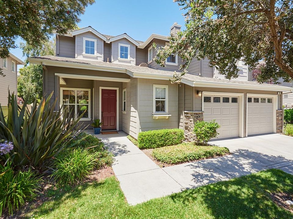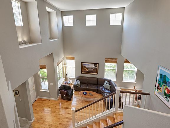 3 BR + Loft Office! MUST SEE! Updated, bright & airy home in Gossamer Cove w/ curb appeal. 2-story high ceilings in living room next to dining room. Hardwood floors throughout. Totally remodeled kitchen with soapstone countertops, Franke French sink, full back splash, high-end stainless steel appliances, double ovens, gas range, breakfast nook & walk-in pantry. Family room with wall-in custom storage shelves, fireplace, and surround sound. Laundry room downstairs next to half bath. Master suite with large remodeled master bath & walk-in closet with custom organizers. 2 other bedrooms share an updated Jack & Jill bathroom. Both bathrooms have Caesar stone counters & heated ceramic tile floors. Built-in loft office has ample cabinets/shelves & filing drawers. Back & side yard with built-in BBQ, bar under a trellis with low-maintenance flagstone patio & mature trees. Central air conditioning. Short walk to community parks, lagoons & trails. Top rated Belmont/RWS Schools. HOA $192/mo.