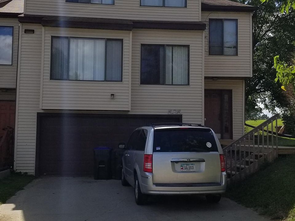VERY large 3 BR townhouse. 2 BR's on top floor with 1 in lower level. 2 car attached garage, large "office" space off living room with many built-in bookshelves/desks. Main floor has living room w/ fireplace, office, 1/2 bath, kitchen and dining area and 2 sliding doors to deck and backyard. 3rd floor has Master BR with large walk-in closet, small balcony, fireplace, full bath and additional BR. tenant pays all utilities, takes care of lawn and snow removal