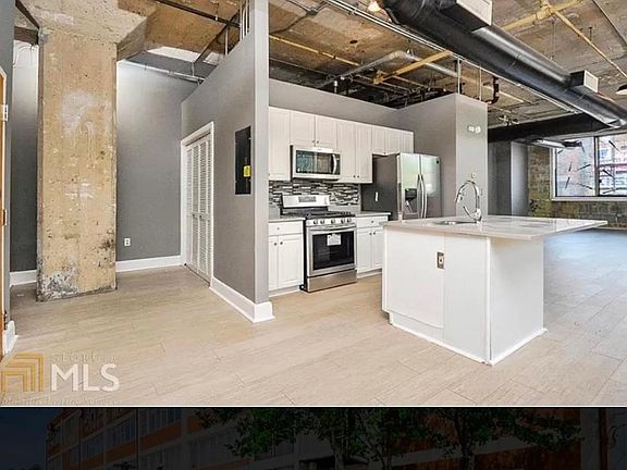 Huge New York style loft with exposed brick for rent! New appliances, FURNITURE INCLUDED, new flooring, 15 6ft windows very convenient to downtown, kid friendly and over 30 restaurants/bars in area. Worlds famous Mercedes Benz stadium less than 5 minutes away! The unit has central heating and air conditioning. Building has an elevator rooftop deck.. The building has an active homeowners association and great property management. Text number for video of furnished apartment