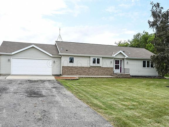 A beautiful rambler on a 2 acre lot! Property is private, spacious, and gorgeous; no neighbors in your backyard and beautiful views from all windows. The main floors' open concept is great for entertaining, enjoying time with family, and has everything you need; kitchen with pantry and tons of cabinet space, dining room, living room, sun room, 1 full bathroom , large master suite with ¾ bath and WIC, another bedroom, and laundry room with ½ bathroom. The finished basement offers a family room, additional bedroom, bonus room, office, ¾ bathroom, and large shelved storage room. Half of the 40 × 50 shop is insulated and includes an indoor kennel.