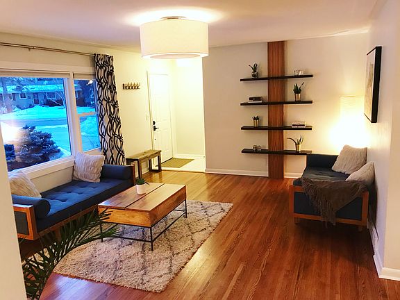 This is a gorgeous walk-out, mid-century modern rambler that has been thoughtfully remodeled inside and out, top to bottom! This beautiful home is turn key, minutes to downtown, and great for entertaining! This desirable large corner lot has mature trees and is tucked away in the quiet Regent neighborhood right next to Basset Creek Park! Kitchen has granite countertops, stainless steel appliances. There are new bathrooms, refinished hardwood floors, a new concrete garage floor and driveway, new roof, new gutters, deck, pergola, a fenced private backyard and much more! Potential for a 4th bedroom in the lower level. No items have been left undone!