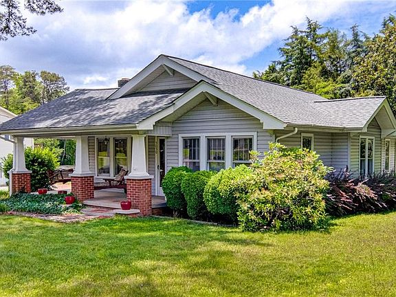 BEST OFFERS REQUESTED BY 8:00 P.M. ON JUNE 3RD! This charming three-bedroom, one-bath bungalow welcomes you with its covered wrap-around front porch, where you will spend hours relaxing and entertaining! The original wood floors are a wonderful feature of this home, and there are other decorative touches of its era. The living room is graced by a wood-burning fireplace with built-in bench/chests on both sides providing handy storage. The dining room will accommodate a large table and chairs, and it has built-in glass-front shelves for displaying your treasures. There's a nice sized kitchen with a pantry. A partial basement provides good storage space, and there's a 2-car carport as well. The large back yard offers great space for gardening or playing. Appliances go with the house. This home is sold as-is, and seller has taken care of two big items with new roof and new heat pump in 2022.