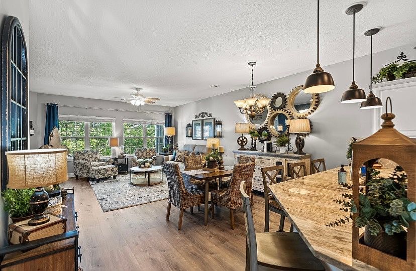 CONDO WITH A GARAGE!!! Gorgeous decorator owned condo and it shows! This beautiful floor plan lives like a single family home. Open and bright corner unit on second floor with only one common wall and no one above you. Updates within the past five years or less, includes HVAC, LVP flooring, lighting, plumbing fixtures, paint, updated kitchen with new granite, backsplash, appliances, and more. Washer dryer and refrigerator are included. Very spacious rooms and all bedrooms have walk in closets. Step out into the huge 12’ X 16’ screened porch complete with EZY Breeze windows and enjoy the beautiful pond view and soothing sounds of the fountain. Attached 12’ X 21’ garage plus an additional assigned parking space next to garage plus guest parking. Neighborhood is gated and minutes to groceries stores, shopping, outlet mall, and restaurants. HOA dues include full homeowners insurance inside and outside, full exterior maintenance, monthly pest control, termite control, cable, wifi, pool, cabana, lawn care, power washing, gutter cleans, dryer vent cleans, security gate and more. This is a must see!!!