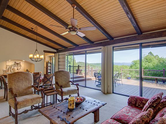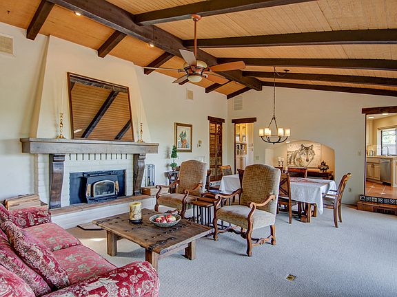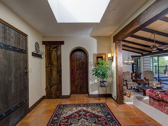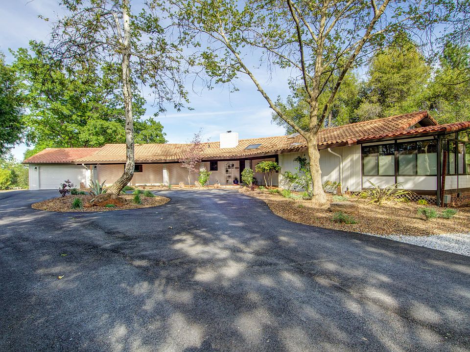 Great views, private setting, custom home on 10 acres just minutes from Placerville. Home features 2 bedrooms plus a office, 3 bathrooms (recently updated), living/dining room combo with view fireplace and view of the mountains, newer terra cotta porcelain tile floors, kitchen with granite counters, stainless steel appliance, media room with wet bar, large laundry room, tankless hot water heater, 1500 sq ft Timber Tech decking. Hot Springs Grandee spa, pergola off kitchen, solar system, small orchard, 2 car attached garage, 2 car detached garage and a 1700+ sq ft storage/shop.