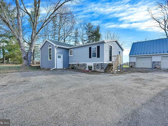 TWO DWELLINGS: Unique opportunity to own two homes on one property! Dwelling "A" on the right is the original home on this lot. This is a cottage style home w/a wraparound porch featuring 1-2 Bedrooms & 1.5Baths. The home is in the process of a complete rehab which includes: NEW Metal Roof, NEW wiring, NEW Drywall & NEW high efficiency gas furnace. Features include pine wood flooring & vaulted ceilings in some of the rooms. Tongue & Groove vaulted ceiling in the Living Room. Country Kitchen w/cherry-Stained cabinets & Corian Countertops. The dining area offers a lovely view of the surrounding countryside w/sliding glass doors that lead out to a small paver patio. The Family Room has a beautiful stone Fireplace (functionality is unknown) and a large picture window. This room has a closet and could be used as a 2nd Bedroom. Dwelling "B" is a 3BR & 2 Full Bath Double Wide Mobile Home w/1248 Sq ft and has a full basement that could be finished in the future for additional living space. This home is also being remodeled & has a NEW Metal Roof, NEW Windows & NEW drywall throughout & A NEW gas furnace is being installed. Features include vaulted ceilings, pinewood Floors, painted Kitchen cabinets & enclosed foyer area w/steps to basement & main floor. There is also a detached Oversize 2-Car Garage w/a metal roof & electric. There are stairs that lead up to a large storage area above the garage too! The cement slab out back used to have a dog kennel on it. All this situated on a beautiful 1-acre lot with lots of shade trees. The homes sit back off the main road & is the perfect place for large family gatherings! There is one septic & well that are shared between the 2 homes. There are 2 separate electric meters & 1 gas meter. It is natural gas. Unique property with lots of possibilities! If you are looking for a property that you can have income rental or would like a family member living close by, take a look at this property today!! TWO ITEMS TO NOTE: Seller is still working on the property so call the listing agent before writing an offer so we can determine what all needs to be completed prior to settlement. Also the 5 bedrooms & 3.5 bathrooms are a combination of both dwellings.