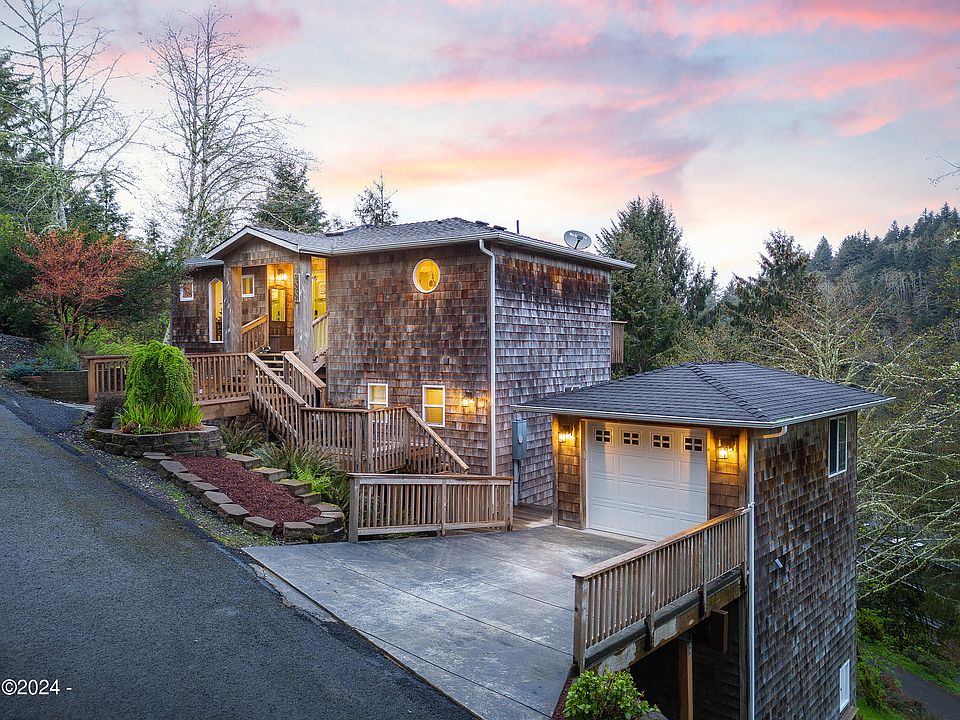 Enjoy the peace and tranquility where the forest meets the stars after an adventurous day at the Beach. Northwest Contemporary designed home with main level living and two en suite bedrooms below. Quality construction with real wood floors, clear pine trim, cedar shingle siding and a concrete pier supported foundation. Includes a detached garage with a mother in law apt! Seasonal Ocean views to improve with tree thinning. Relax on one of 4 decks in the canopy of the old growth trees and surround yourself with the refuge that nature provides. A short jaunt to the Neskowin Village and beaches below. 12 miles to the amenities of Lincoln City. Expand your kingdom or add additional development potential with the neighboring lot being offered for sale.