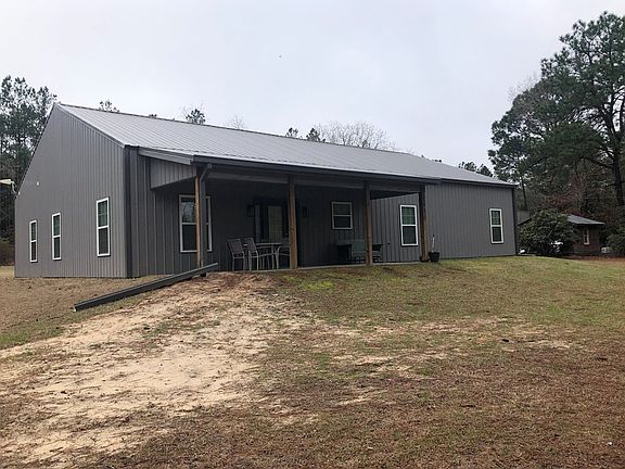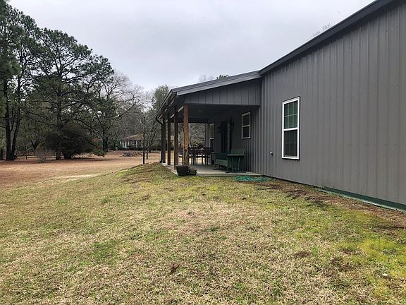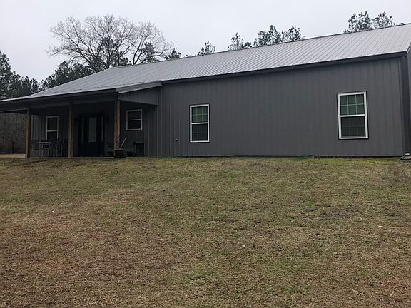 Would you like a lot of privacy in an upscale cabin in the woods on 6 acres? Metal building with one half being used as upscale house and the other half is an oversized garage. Open floor plan. Huge island in kitchen with granite countertops with ample space for seating. Stainless appliances including a refrigerator. Large pantry. Nice laundry room. Recessed lighting, ceilings fans and 10 ft. high smooth ceilings. Master bedroom is a good size with adjacent bathroom with stand-up shower, and granite countertop. Walk-in closet. Garage is approximately 1200 feet and has garage doors 10' wide. Huge! Great for storing recreational vehicles, boats, etc. Very secluded area. Great for a family home or cabin in the woods for fun memories. No HOA! Beautiful property!