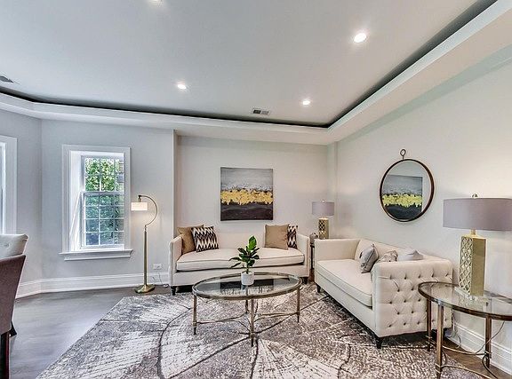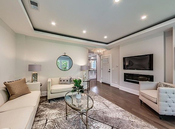 This top floor 3-bedroom 2-bath penthouse apartment has recently been updated with new floors, walls, cabinets, appliances, plumbing, and electrical. The kitchen features a grand chef's kitchen with stainless steel appliances, white shaker cabinets, gray/white quartz counter-tops, and eat-in kitchen island. Well thought out floor-plan with high ceilings, lots of storage, and an in-unit washer & dryer. Additionally, the master suite includes custom ceiling designs, ambient lighting, and a grand en-suite with a double vanity sink, a free-standing tub, and a walk-in shower with rainfall & body jets. The other rooms are equally updated. The living room has custom ceiling designs, a modern wall fireplace, and large windows that let in tons of natural light. Beautiful backyard with concrete patio perfect grilling and entertaining. Extra storage space and one garage parking space are included in the rent. If tenant signs a 20-month or longer lease, rent will be reduced to $2,675/month. No security deposit. First month rent and $700 non-refundable move-in fee due upon signing lease. Two-minute walking distance to the North Branch Chicago River and Eugene Park. Available on September 1st. A 3D virtual walk-thru is available upon request 24-7. In-person showings will start on August 22 from 1-3PM.