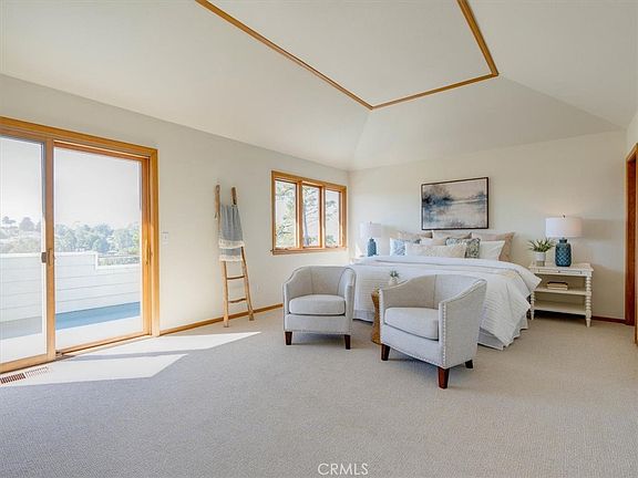 Home With A VIEW and extra LOTS! At the beginning of Pine Knolls Drive, a turn onto the driveway leads you to a space where the views are quite incredible; you are in your own sweet world looking out over and through the trees, above the west village and along to the sea. It is a unique Cambria view that only a few homes share. The home’s main level has a large kitchen and attached breakfast room, adjacent dining room with a big view, living room with fireplace and a family room. There is also a bathroom, laundry room and wonderful view decks off the living room and kitchen. Upstairs are three lovely bedrooms and two bathrooms. The primary suite has a large walk-in closet, ocean view and ocean view deck. The two guest bedrooms have vaulted ceilings. Additional amenities include a dumbwaiter and a wine bar area off the living room. On the first level is the oversized, two car garage. It has a workbench and storage room. This home comes with two additional estate size lots . Welcome to Pineknolls Estates where you are walking distance to both the east and west villages of Cambria.
