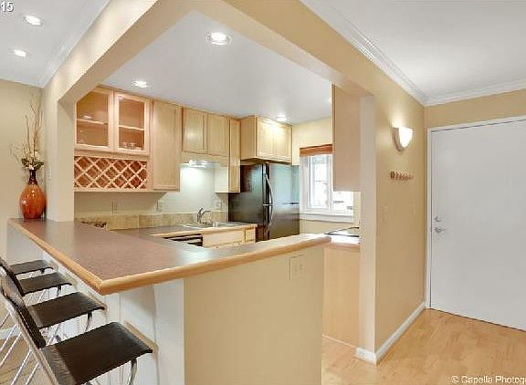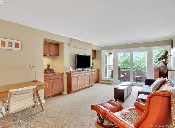 Rare 2 bed/2 bath fully renovated John's Landing Condo. Overlooks the Willamette walking path right on the river. Features open kitchen w/updated cabinets, appliances, flooring & recessed lighting. Updates include; crown molding, paint, carpet, gorgeous built-ins, renovated bathrooms, gorgeous master shower & built-in closet organizers. Enjoy access to downtown, OHSU Tram & Streetcar. Very solid HOA.