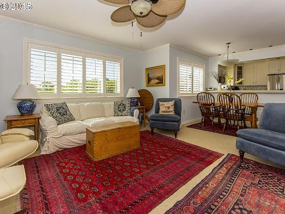 Very desirable upper end unit at Heron Pointe - tastefully remodeled kitchen and baths. Open floor plan, great for entertaining. Kitchen with Caesarstone counters and tile backsplash. Sunny living room with fireplace and french door to deck. Common greenspace and extensive walking/biking paths right outside your door. Easy access to local shops & restaurants. Two deeded parking spaces, (1 carport/1 lot) Experience riverfront living!