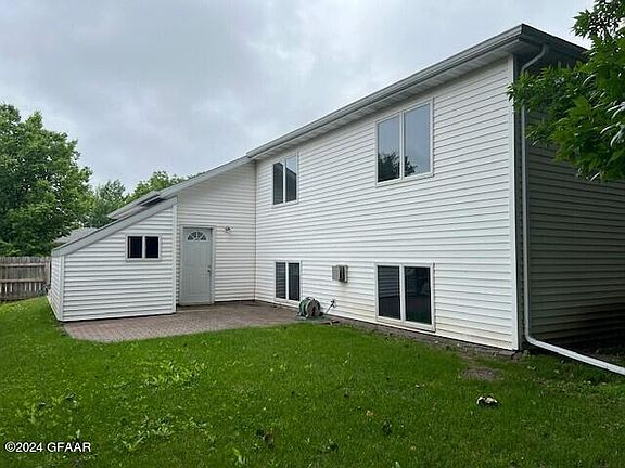Spacious 3 bed, 3 bath split on a quiet & neighbor friendly street a mile west of UND w Jaycee's Park a short walk away. Features; a 3-season room, brick patio, 3-way gas fireplace, cabinetry in large laundry room, & a storage shed off garage + extra off-street parking. Freshly painted upper level, & new carpet in lower bedroom and family room. Owners willing to negotiate & encourage all offers!
