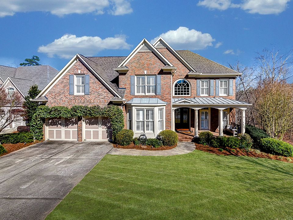 Beautiful brick traditional on cul-de-sac lot right around the corner from Whitfield Academy. Watch wildlife in the backyard of the .84 acre wooded lot. Hardwood floors grace the main level which features a home office, living room, & dining room. Expansive kitchen w/ cherry cabinets, stainless appliances, & granite counters is open to the 2-story family room w/ stacked stone fireplace. Master suite has trey ceiling, private sitting room, & spa bath with vaulted ceiling. Full unfinished basement ready for expansion. Located just down the street from 2nd clubhouse/pool!