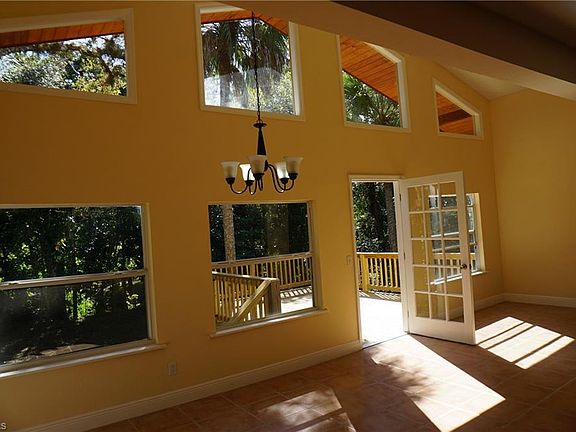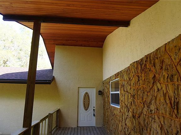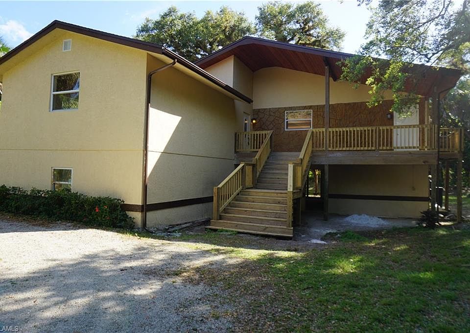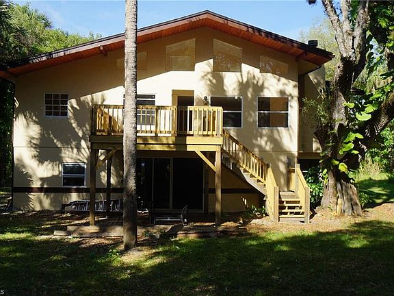 Rare available beautiful remodeled 2 story home on Orange River! Private location on a 0.78 Acres of land with tropical oak and palm trees with plenty of room for a pool. Long circular driveway leads to the 1860 square foot open floor plan house with very spacious rooms, fireplace, large kitchen, wood deck and entry. House was updated with new 3D shingle roof, new gutters and drain system, new wood deck and stairs in front and rear of the house, Tung and groove outdoor lanai ceiling over the deck, stucco outside, new paint inside and outside, new pump and tank for water system, new electric service and panel, new kitchen wood cabinets, granite countertops, appliances, light fixtures, faucet, plumbing and electric, real wood burning fireplace, transom windows in the rear, solid wood interior stairs, tile floors throughout, wood floors in one bedroom, new bathroom vanities, Jacuzzi tub, toilets, showers, shower glass doors in one bathroom and much more. Ground floor is unfinished space. Property is located within 5 miles of restaurants, stores and convenient distance to Fort Myers beach, airport, shopping centers and attractions but yet keeping the tranquility of a country living!