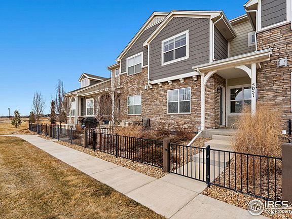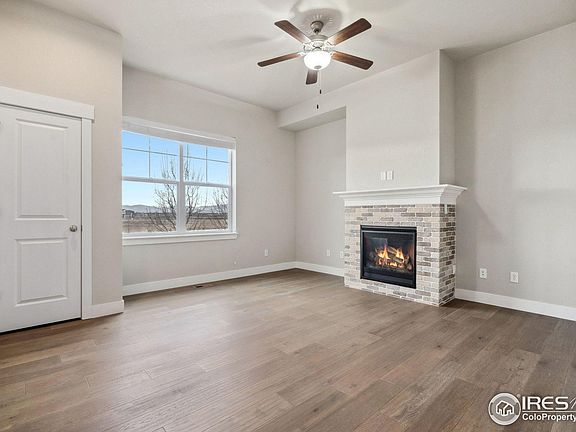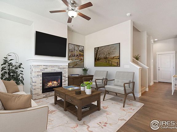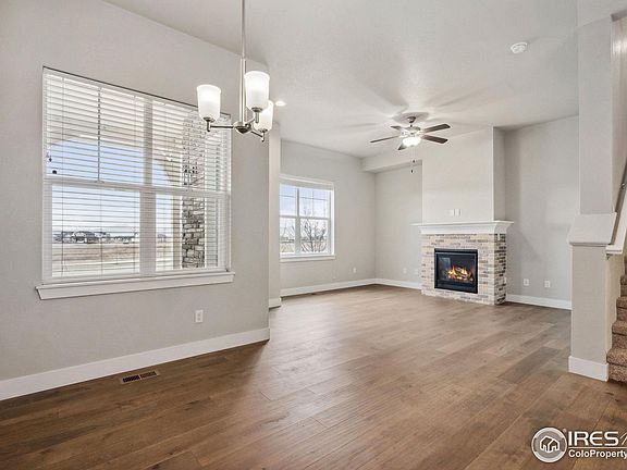 Welcome to an exceptional offering in the desirable neighborhood of Timnath Ranch. This impeccably maintained two-story, 3 bedroom, 3 bath townhome is close to Bethke Elementary, Timnath Community Park, as well as an inviting pool. Embrace the charm of this residence as it overlooks open space behind the school with picturesque views of the mountains. Discover a thoughtfully designed open floor plan featuring 10' main floor ceilings and vinyl plank flooring on the main level, and gas fireplace in the living room. The bright kitchen is adorned with white cabinets, subway tile backsplash, under cabinet lighting, new dishwasher, and center island that makes meal prep a delight. Upstairs you will find 9' ceilings, complemented by a vaulted ceiling in the primary. The primary bath provides a spa-like environment with quartz vanity countertop, dual sinks, earth tone tile shower, large linen closet as well as a fabulous closet. Ceramic tile floors in the primary bath, hall bath, and upstairs laundry add a touch of luxury. The laundry includes cabinetry, shelving and washer and dryer. The unfinished, yet insulated, basement offers ample space for customization, a high efficiency furnace and tankless water heater. To complete the offerings of this incredible townhome is a 2- car attached garage equipped with a 220v outlet for charging. Welcome home to the perfect blend of comfort, functionality, and fun!