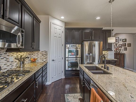 Immaculate Copperleaf Ranch style home! Generous & open floor plan, all you need to do is move in! Exquisite finishes in this 4 bedroom, 3 bath home, Including gorgeous maple hand scraped hardwood floors throughout the entire main level, crown molding, under cabinetry lighting, oversized family room with gas fireplace on a digital blower, slab granite, SS appliances, double ovens, gas stove, under mount sinks throughout, white wood blinds, ceiling fans, tons of cabinet and counter space. Master bedroom complete with walk in closet, coffered ceiling, 5 piece bath with large soaking tub. 3rd main floor bedroom with built-ins can be used as a home office. Main floor laundry. Basement with gigantic media/entertainment area, lots of light, 4th bedroom with 3/4 bath. 2 oversized storage areas. 3 car garage includes door leading to lush and beautiful backyard. Enormous wood deck to enjoy those summer evenings. Apple trees & planter boxes. Award winning Cherry Creek Schools! Welcome Home!