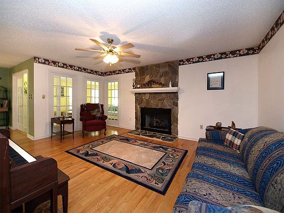 Reduced $25,000. Custom built home on lrg priv wooded cul-de-sac lot (almost an acre!). Open flr plan with extensive hardwoods. GR has gas log fireplace and floor to ceiling stone work. Spacious eat-in kit with ample cabinet and counter space. Master suite has dramatic 10ft ceilings and lrg master bath. Extra lrg 2 car gar plus outdoor stor bldg. Bkyd has fenced play area great for kids.