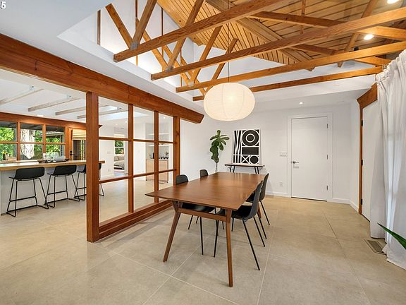 Jaw dropping beauty. Single level updated mid-mod ranch that’s clean, classic, & stylistically inspiring. Dream kitchen alert! Expansive walls of windows, striking vaulted exposed beams with skylights create a space filled with warmth, light, and character. Stainless steel new appliances, gas cooking, open concept. Large primary ensuite with walkout to yard, spacious walk-in closet, cozy fireplace and attached bath. Thoughtful designed floor plan with 2 additional bedrooms on the opposite side of the home for privacy. 3rd bedroom has a bonus room off it, currently used as sewing room, with walk-out to the serene park-like fenced yard. Central Heat & AC, pre-wired for generator, double car garage, garden beds, shed, washer & dryer included.Located on a quiet cul-de-sac. Enjoy all Lake Oswego has to offer, with top rated schools, parks, shops, restaurants and more! Come fall in love!