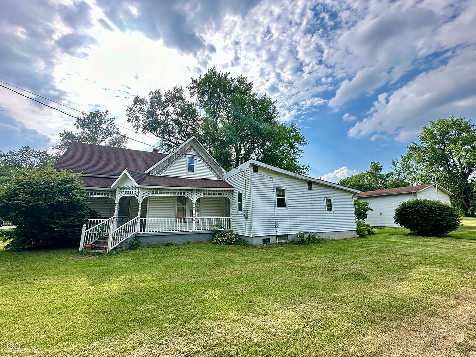 There's SO MUCH POTENTIAL in this 2-story, 2,424 SF, 4 BR, 2 Full BA pre-1900 Victorian farmhouse! Situated on 1.71 acres on the west edge of Ladoga w/ an AMAZING Pole Barn, you'll feel like you're out in the country. The house is sprawling w/ both a Living Room AND a Family Room providing 2 separate living spaces. The Living Room is 26x14 & features a gas log brick fireplace w/ built-in bookshelves. The enclosed glass Sun Room is heated & is adjacent to the Bonus Room that can easily serve as either a Home Office, Mudroom or Play Room. The spacious Eat-in Kitchen has an original built-in china cabinet, large pantry & center island. The gas stove, range hood fan, refrigerator, dishwasher & microwave are all included. Laundry Room w/ washer & dryer included. Both full BAs are HUGE at 12x8 and 8x8, providing plenty of space for family use. 2 of the BRs are located downstairs and the other 2 BRs are upstairs w/ a large 16x10 Loft. The 1,200 SF Pole Barn was built in 1993 and can easily park 4 vehicles. There are 2 over-sized doors, plus a 3rd jumbo door tall enough for an RV or semi. The Pole Barn has auto. garage door openers, concrete floor, a separate 100 amp. electrical panel, gas furnace, shelving and even a 1/2 BA! Covered front porch w/ gorgeous detailing on the wood trim, plus back patio. Homes like this don't come around often and can easily be the home of your dreams w/ some cosmetics and updating. Don't miss out!