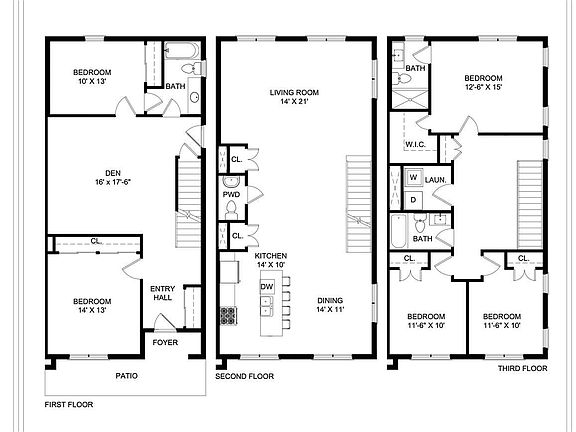 New, semi-detached townhome in Deanwood! 5 bedrooms, 3 full baths and 1 half bath. What’s not to love with over 2,600 square feet of spacious, open floor plans, ceiling fans, beautiful flooring, an abundance of window light and recessed lighting. Enter the foyer on the main level featuring two bedrooms or offices if you prefer, a family room or den with a full bath. The second floor holds the formal living and dining areas, powder room, a modern streamlined kitchen with a breakfast bar, pendant lighting, stainless-steel appliances, quartz countertops offset by white shaker cabinetry and a deep pantry for extra storage. Seated on the upper level is the primary suite that can easily accommodate a king size bed, an en suite bathroom and a walk-in closet. Two additional bedrooms with a full bath are on this level as well as the convenience of a laundry with washer/dryer hookups. Full baths feature subway tile, and large format floor tiles in white and grey neutral colors. Deanwood offers a suburban feel of lifestyle and community with easy access to local dining and shopping.