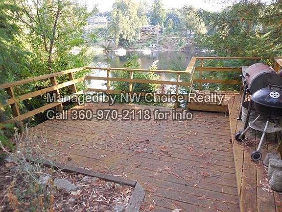 Very cool home on waterfront at Lake St Clair. This home has been remodeled into a duplex. It has unconventional living spaces, one bedroom, kitchen, separate eating area, glass enclosed patio, wood burning stove located in the main living area keep the home plenty warm. 2 parking spaces in the driveway for your use. Naturally landscaped yard has mostly Northwest native plants that are easy to care for and bamboo lined staircase. There is a dock at the waterfront, picnic area and an outdoor deck that is shared space with the other tenant. Application fee is $35.00 per person. Minimum qualifications include good credit. Pet fee is $250 and is non-refundable. Only 1 pet allowed and subject to approval. Owner pays: Water, Sewer & Electric. Tenant is responsible for cable, phone and garbage.