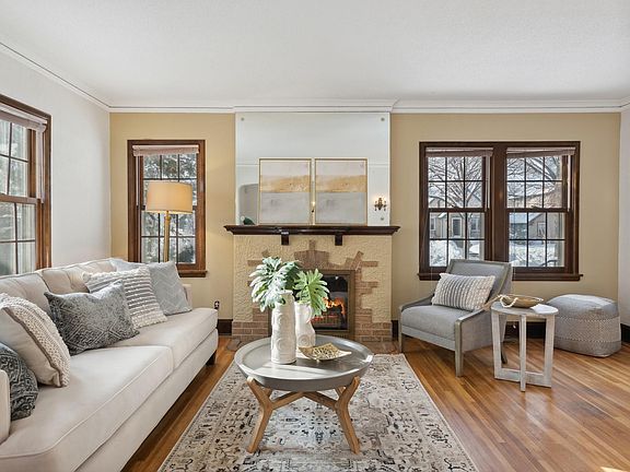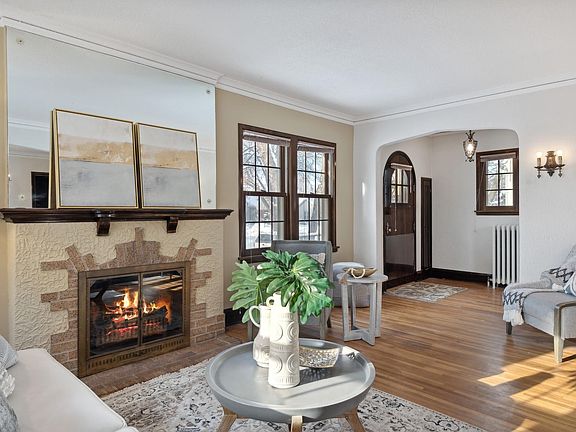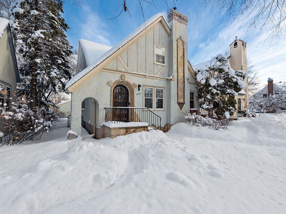 Storybook home with loads of charm just steps to the Minnehaha Parkway in the heart of the Hale neighborhood. Lovingly cared for and tastefully updated - this home is a gem! Elegant living room & dining room with coved ceilings and archways. Updated eat - in kitchen with custom cabinetry, cork flooring, solid surface countertops + stainless steel appliances. Updated full bathroom with subway & accent tile, glass block window and pedestal sink. Oak wood floors and new windows. Wonderful opportunities to grow with the large upper expansion and the unfinished basement. Same owner for 53 years!