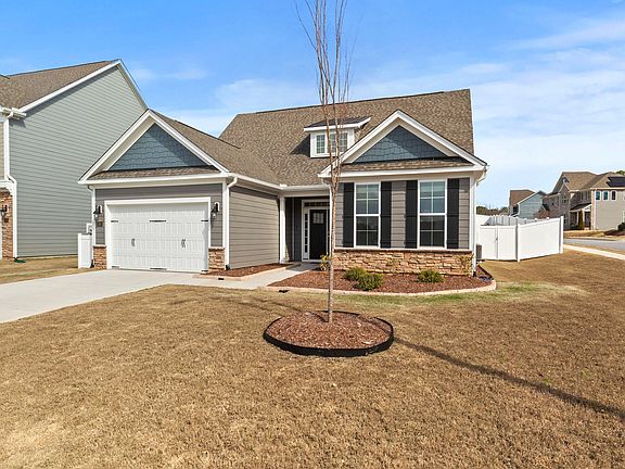 This BETTER THAN NEW home is ready for its newest homeowner! Located less than 2 miles from Costco, restaurants/shopping and quick 540 access, location is EVERYTHING. This 2022 built coastal style home is located on a .25 acre fenced in corner lot and across from the community green space. Outside enjoy your nights on your gorgeous patio w/fire pit and screened in porch which offer the ultimate private retreat. In addition to its beautiful exterior, this home offers many elevated interior features creating a beautiful, well thought out home. Beautiful double door entry, 11' ceilings throughout the main floor, grand foyer, primary suite with tray ceiling and two additional bedrooms (one w/vaulted ceiling) on the main floor. Upstairs, you will find a 3rd guest bedroom with full bath and large bonus room perfect for hosting movie nights! Enjoy your oversized gourmet kitchen with separate dining and breakfast nooks overlooking your large family room and screened in porch - a dream for hosting and entertainment! Additional features include tankless water heater, 2 car garage, gas fireplace, upgraded trim throughout the home as well as Hardie siding.