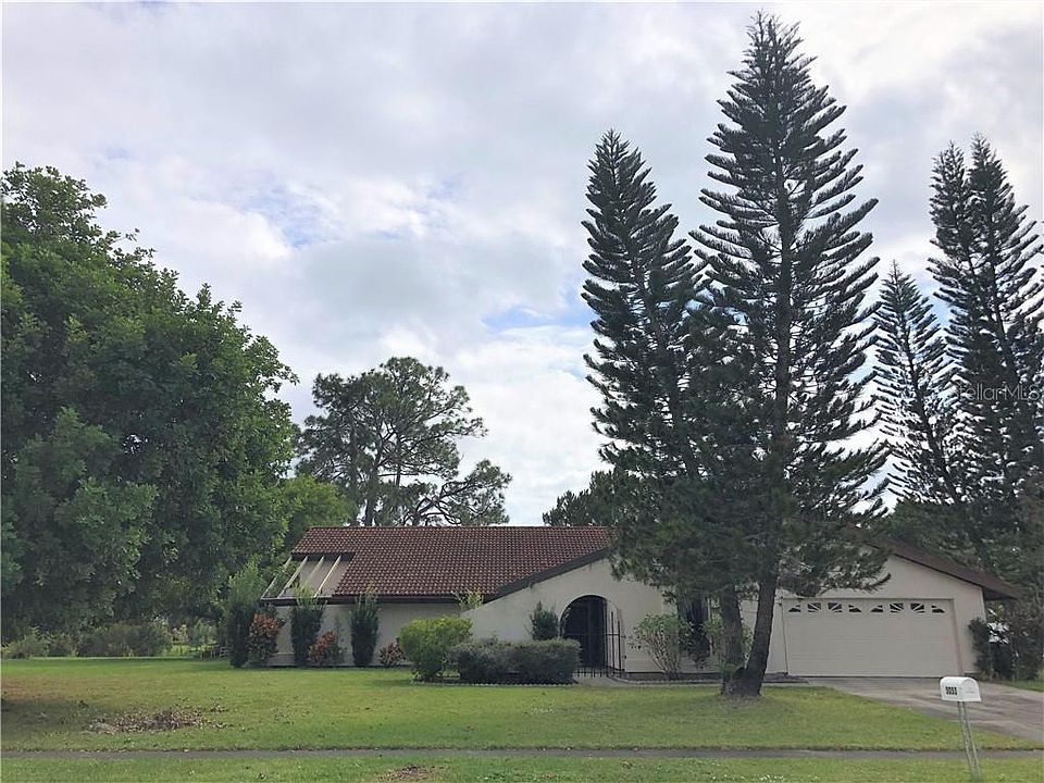 This large single-story pool home lies on a very large lot (18,750 SqFt). All 3 bedrooms come with their own full bathrooms. Owner has utilized the large 2nd bedroom (with the double-doors), as his office. The unique split plan may provide opportunity as in-law suite. There are lots of closets with ample storage spaces. Kitchen has been redone with wood cabinets and granite counters. Public water and public sewer, and very close to the North Port City Center, restaurants, supermarkets, shopping and schools. Per residents, no HOA. For those of you up to remodeling, this may be the perfect opportunity for you.