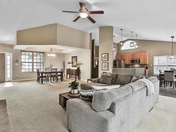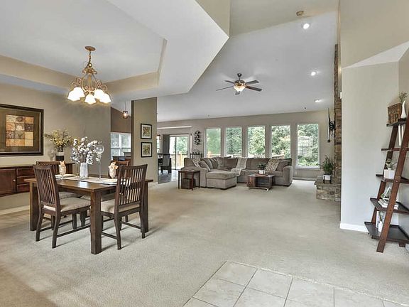 You will be amazed at the amount of beauty this 4Bed/3Bath Ranch home exhibits. Wonderful open floor plan, deck & covered patio make it perfect for entertaining. Spacious Dining Room & Living Room meld together making one big beautiful room. Dining Room reveals a coffered ceiling with a chandelier for illumination. Living Room flaunts a vaulted ceiling with a lighted ceiling fan, wall of windows and a raised hearth floor to ceiling stone gas fireplace. Breakfast Room features a bay window with a sliding door that opens onto a deck. Kitchen possesses 42" cabinets, vaulted ceiling with pendant lights and a large Pantry. Appliances include stainless steel dishwasher, microwave, dual built-in ovens and a gas cooktop with front controls. Master Bedroom Suite displays French doors, vaulted ceiling w/ a lighted ceiling fan, bay window, walk-in closet and private Master Bath. Master Bath shows off double vanities, soaking tub and separate shower. Lower Level unveils a Rec Room, Bath & Bedroom.