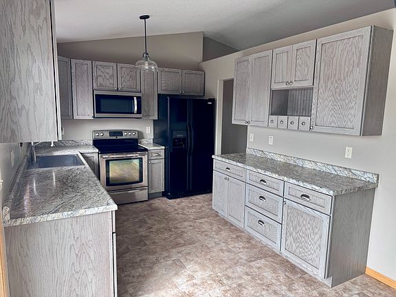 Spacious 4-bedroom, 2-bathroom split-level home with a walkout basement and attached, extended double car garage (fully insulated). Recently remodeled kitchen with soft close cabinets and full extension drawers. Fully fenced backyard with storage shed. Fully finished basement with ample storage and large laundry room with sink. Storage space under the stairs. New furnace, new central air unit, new water heater. Sprinkler system. Large corner lot. Dog door access to the backyard. Sliding door access to deck that leads to the backyard. Twelve month lease. Tenant pays all utilities (electric, gas, water, and trash). Pets (Domestic - Dogs and Cats) are generally allowed, however their acceptance is not guaranteed until approved. Tenant must provide necessary information in the pet application. Certain breeds or mixes of breeds and/or pet with certain behavioral histories may not be allowed. No Smoking. Must complete Zillow application - property owner may require further information depending on credit/income and/or pet information.