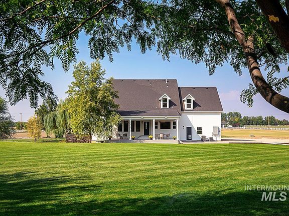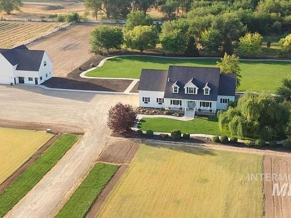 $300K price improvement! incredible sub-dividable acreage estate in Meridian, Idaho! This gorgeous, remodeled farmhouse on 10 acres is the Idaho lifestyle you've been dreaming of - a modern farmhouse with fun at every turn…camp in your own backyard, play soccer, volleyball, or enjoy the paved path around the property. Take in the southern views of your lush private acreage w/ mature trees from your enormous country porch. The main-level primary suite has a cozy sitting room & 5-piece bath. Upstairs are 4 charming bedrooms and a "kid cove" play area. The daylight basement with 10' ceilings includes a theater, dedicated game room, craft room or bedroom, bath, home schooling area, & large hobby room or man cave. This property also features a spectacular indoor racquetball/basketball court, a potential income producing apartment or MIL space, a huge shop with tons of storage, & extra outside office/loft. Plant a lavender/berry farm/orchard or bring your animals! Move-in ready and more fun than you can imagine!