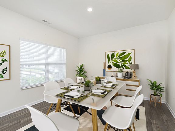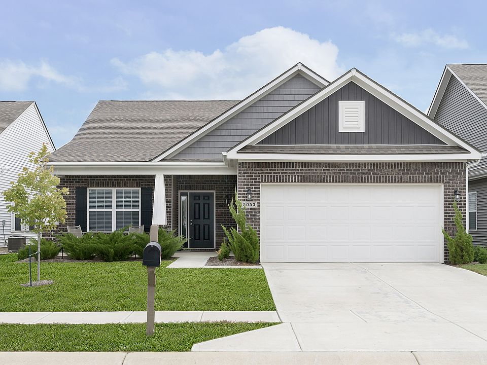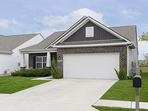 Immaculate, like-new Whitestown ranch home, built in 2020. This residence surpasses new constructions, with blinds already installed. The open-concept kitchen, with a spacious center island, seamlessly connects to the inviting living room, offering a great view of the backyard and a picturesque pond. A versatile flex space at the entrance is perfect for dining rm, play rm or home office. The primary bedroom features vaulted ceilings and an elegant ensuite bathroom. Two additional bedrooms and a hall bath complete the interior. The backyard with a patio is perfect for gatherings, overlooking the serene pond. Close to shopping, dining, and easy I-65 access.