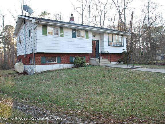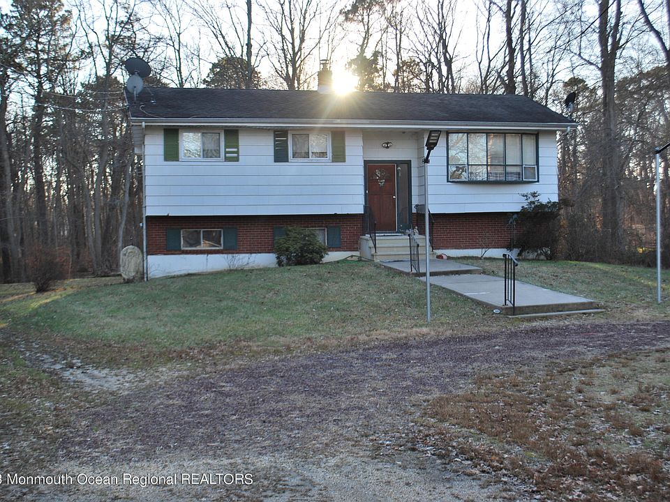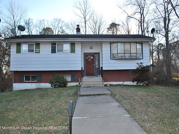 Large 3.4 acre lot with a 1,700 sq/ft bi-level home with 3 bedrooms and 1 1/2 bathrooms. Upstairs has hardwood floors, 2 bedrooms with double closets in each, living rm, dining rm, kitchen and full bath. Downstairs has 1 bedroom, family rm with slider to backyard, 1/2 bath, laundry / utility rm and 1 car attached garage. Home is dated and needs updating throughout. Wetlands are present on the property in the back. Located close to GSParkway, Rt 18, shopping, dining and the JERSEY SHORE.