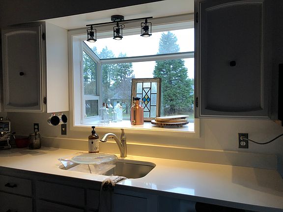 This home sits nestled back at the end of a private road on 1.11 acres. Home has new floors, a renovated kitchen and renovated bathrooms (2017), newer roof with warranty and new windows. The yard offers good southern exposure, fertile level ground for gardens and mini farm. Vaulted ceilings, sun room, roomy kitchen, master bedroom with full bath, shop/garden shed/small out building and functioning well used for irrigating.