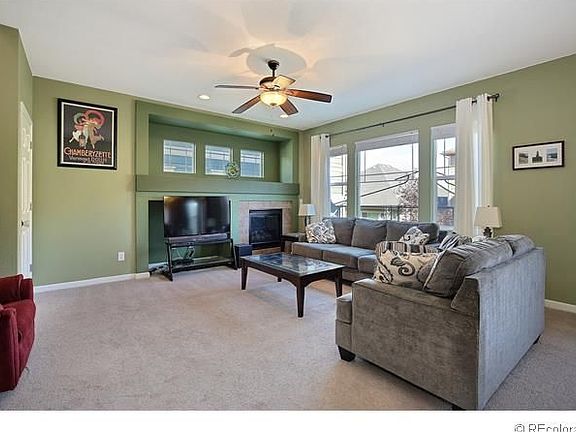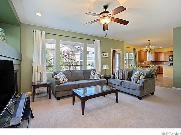 Fantastic James Peak model by Capital Pacific. Great kitchen w/ 42" maple cabinetry, slab granite counter tops, center island, tile floors, GE Profile Refrigerator and huge walk-in pantry. The kitchen opens nicely to the family room with gas log fireplace. There are three bedrooms, two baths and a large loft area upstairs. Spacious master suite with beautiful 5 piece bath and large walk-in closet. The Living Room/Study/Dining Room has bamboo flooring. There is a fenced back yard with large patio, and the yard has an automatic sprinkler system. Full unfinished basement with 9' ceilings and rough-in plumbing ready to finish as you would like. There are ceiling fans in all bedrooms and the family room; plus there is a dual zone furnace and central AC system. Just a few blocks from Eaglecrest High School, several parks, the community pools, sport court and clubhouse. Cherry Creek Schools. Why wait months for a new build when you can own this lovely home now!! Ready for a quick closing.