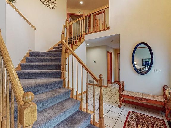 Luxurious retreat in this well-designed 2 story situated on a private acre lot in Woodland Estates. Featuring: covered maintenance-free deck overlooking a breathtaking and peaceful backyard with a paved patio complete w/ firepit. Inside amenities; granite counters, upgraded high-end stainless steel appliances, a professional-chef gas stove, center island, walk-in pantry, tons of counter space for cooking, opens to the family room with gas fireplace, large windows over-looking the landscaped yard, main floor laundry includes front load washer and dryer (2012), new high efficient furnace (2018), radon mitigation system installed, master suite features separate whirlpool tub and a walk in tiled shower, open staircase, both formal and informal dining, house is designed where you can easily work from home, (fiber optic internet service available), LL offers a private office (could be a 4th bedroom by adding a closet), on a cul-de-sac, a great place to call home! 3D virtual tour available.
