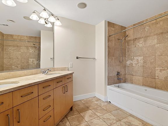 Stunning two-bedroom, 2.5-bath, two-story condo offering luxury living with concierge service and premium finishes throughout. The open-concept main level features granite countertops, stainless steel appliances in the kitchen, with rich wood flooring throughout, perfect for both everyday living and entertaining. Private secondary bedroom on 1st floor with ensuite bath. Spacious primary bedroom upstairs with travertine countertops and matching travertine flooring, creating a spa-like retreat. Thoughtfully designed layout provides privacy, functionality, and modern elegance. Private balcony through the living room and the primary bedroom. Enjoy a lock-and-leave lifestyle with building amenities, secure access, and a prime location close to shopping, dining, and major conveniences. Ideal for professionals, investors, or anyone seeking upscale, low-maintenance living.