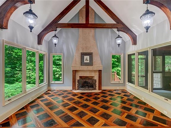 You won’t want to miss this 4 bedroom, 4.5 bath custom home surrounded by beautiful trees on over 10 acres - you feel like you are on retreat. The appointments throughout the home are truly incredible – the office has beautiful wainscotting, the keeping room affords fabulous beam work, the ceilings in the primary suite are stunning, there is attention to detail everywhere you look, plus incredible hardwood floors! You will find a huge open kitchen with granite counters and custom cabinets- a cook’s delight. The primary suite has a luxury bath & shower with a spacious bedroom with fireplace. A finished lower level has an in-laws suite & kitchen. Plus, you can relax in the sauna or enjoy a movie in the theater room. A picturesque view from the large screened porch with fireplace & covered patio is the perfect place to return to nature. Incredible scenery & circle drive make this home extra special. Make you appointment today!